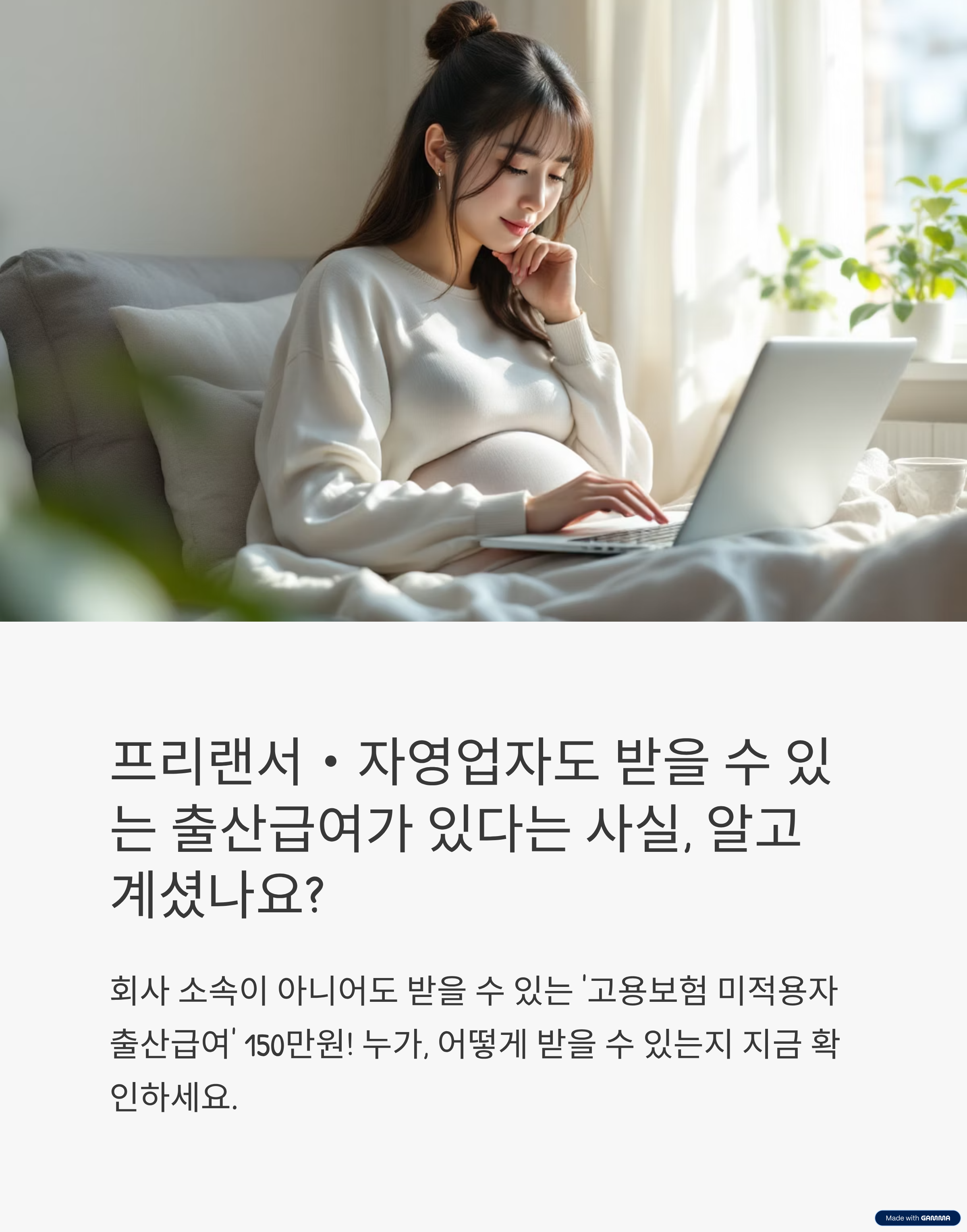 "프리랜서·자영업자로 일하며 소득은 있지만 출산휴가 급여는 받을 수 없다는데, 대체 해결책이 있나요?"