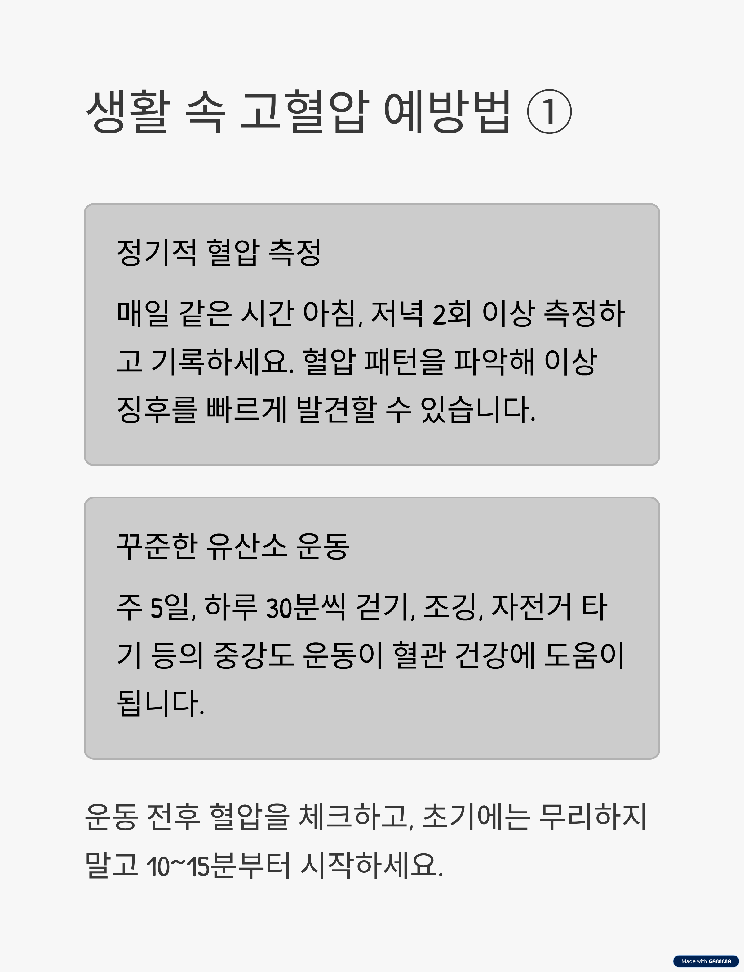 - 운동 전후 혈압을 체크해 급격한 변화를 모니터링하세요.