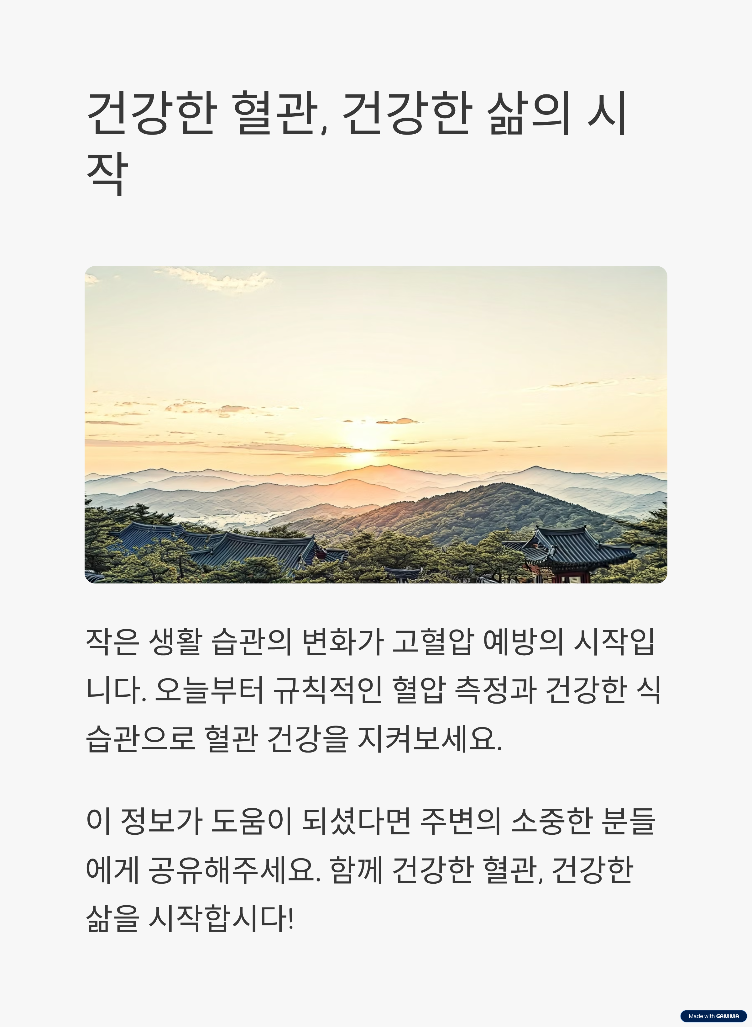 내 몸의 작은 변화가 고혈압 예방의 시작입니다