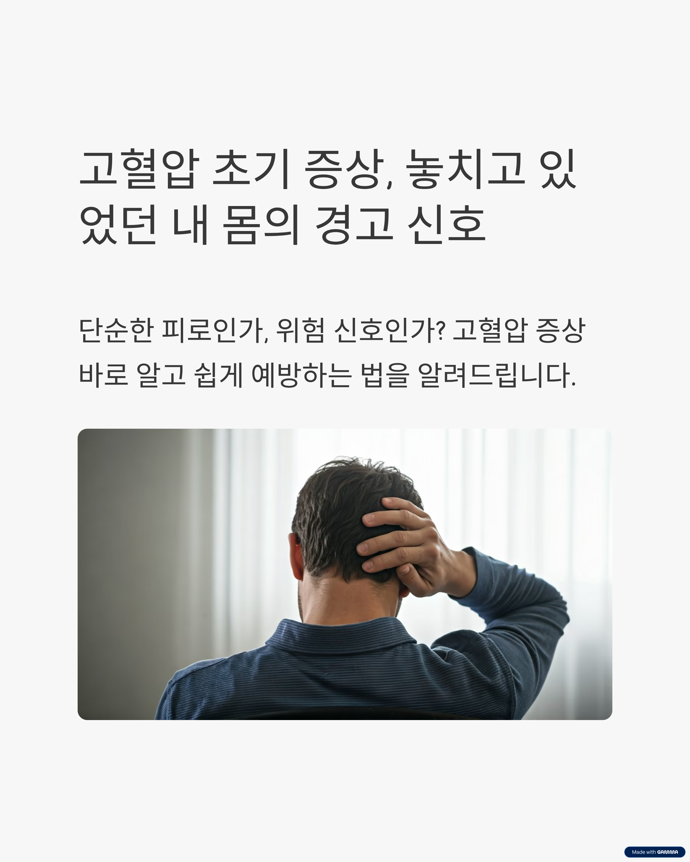 ‘고혈압 초기 증상’을 검색하는 분들은 이 증상이 단순 피곤인지, 진짜 위험 신호인지 확인하고, 미리 예방하는 방법이 궁금하실 텐데요.