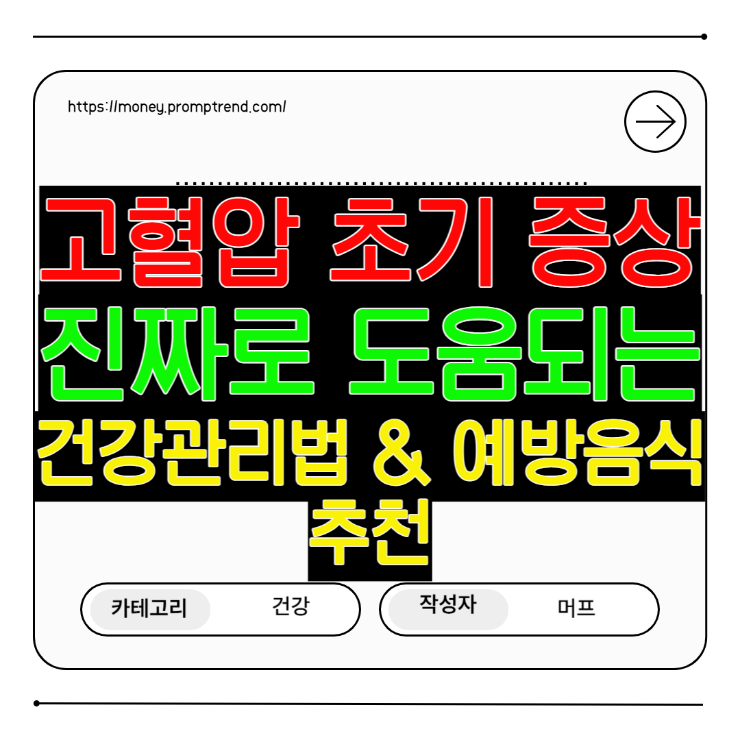이 포스팅에서는 초기에 꼭 알아야 할 내 몸의 변화와, 실제 고혈압 예방에 탁월하다고 검증된 음식 베스트 5, 건강관리법을 상세하게 안내합니다.