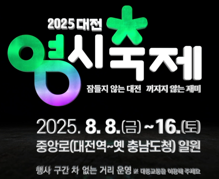 오늘은 무더운 여름, 대전의 대표 여름 축제 0시축제(영시축제)를 소개합니다! 매년 여름 대전의 중심 중앙로를 뜨겁게 달구는 이 축제는 남녀노소 누구나 즐길 수 있는 이색 프로그램과 화려한 공연, 먹거리, 체험부스까지 한가득입니다. 올해 직접 방문해보며 느낀 현장 분위기와 꼭 챙겨야 할 꿀팁을 정리했으니, 방문 전 참고해보세요 :)