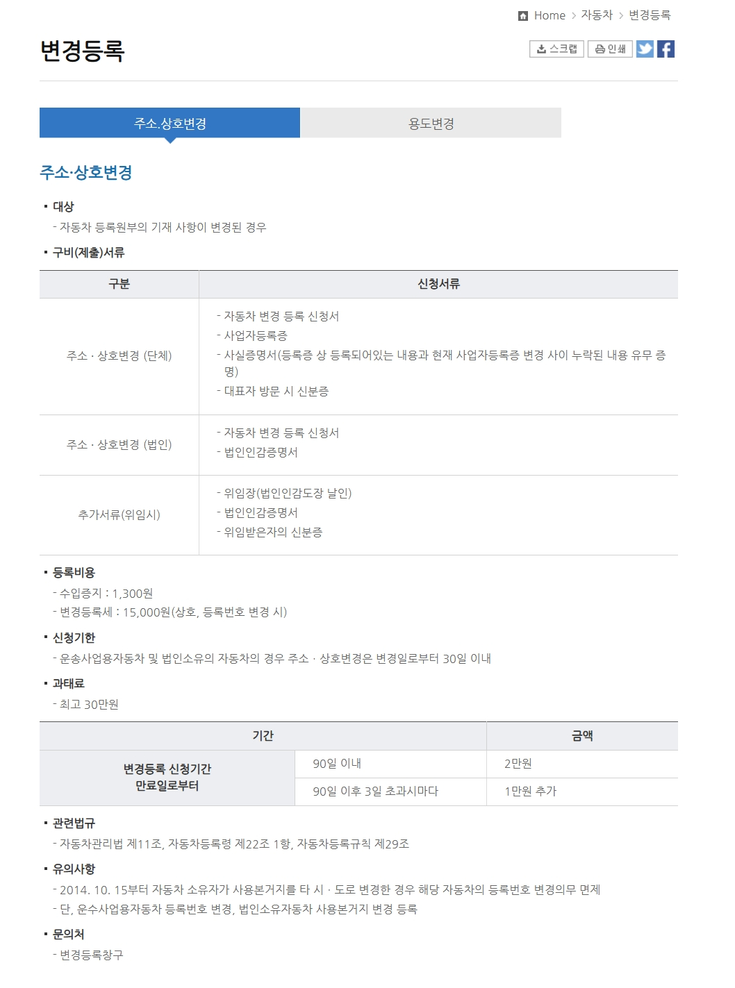 정부 24 ‘자동차 변경 등록’ 민원 페이지 기준, 해당 서비스는 온라인 신청이 불가능하며, 변경 등록은 관할 차량등록사업소 방문 또는 우편 접수만 가능합니다.