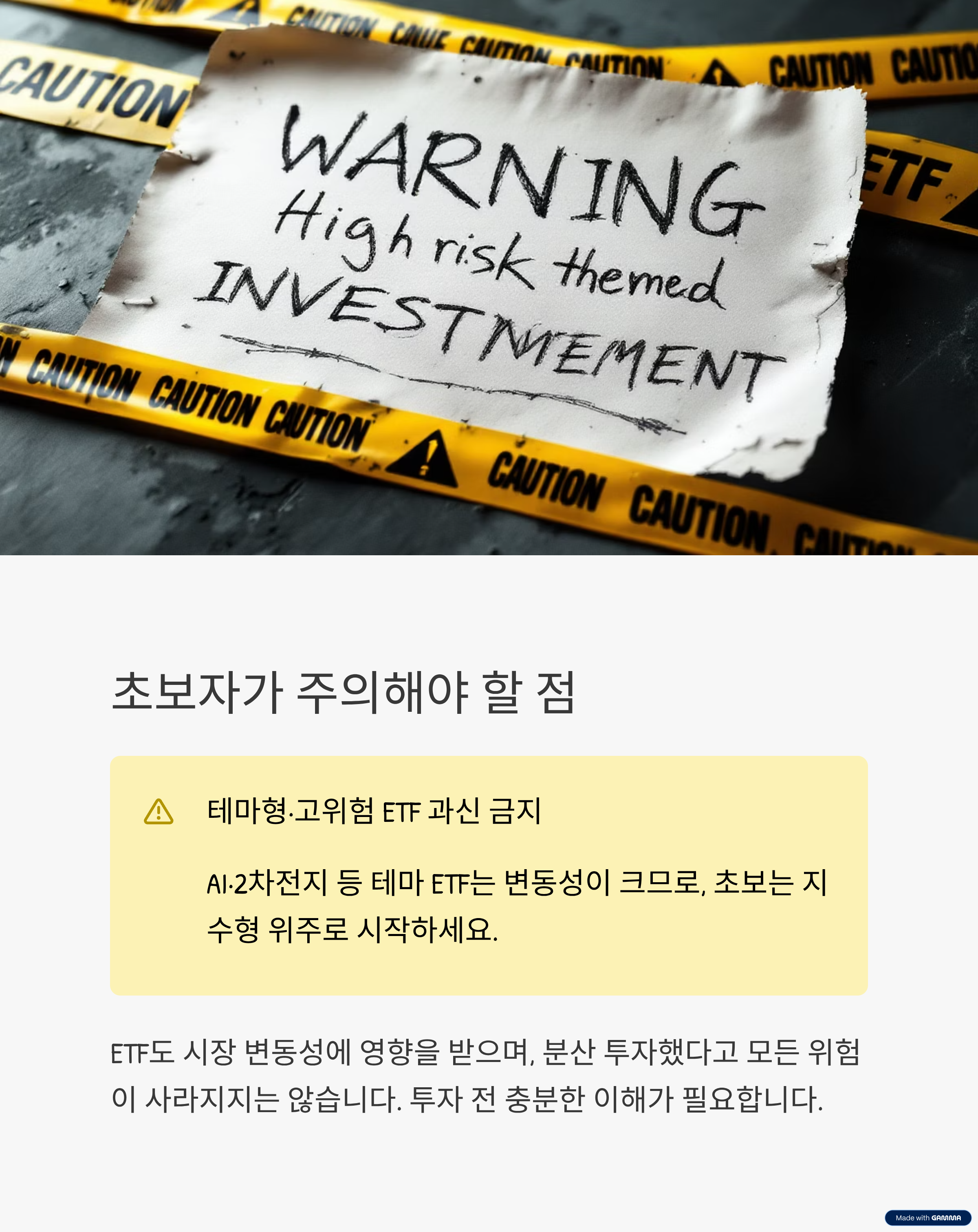 AI·2차전지 등 테마 ETF는 변동성이 크므로, 초보는 지수형 위주로 시작