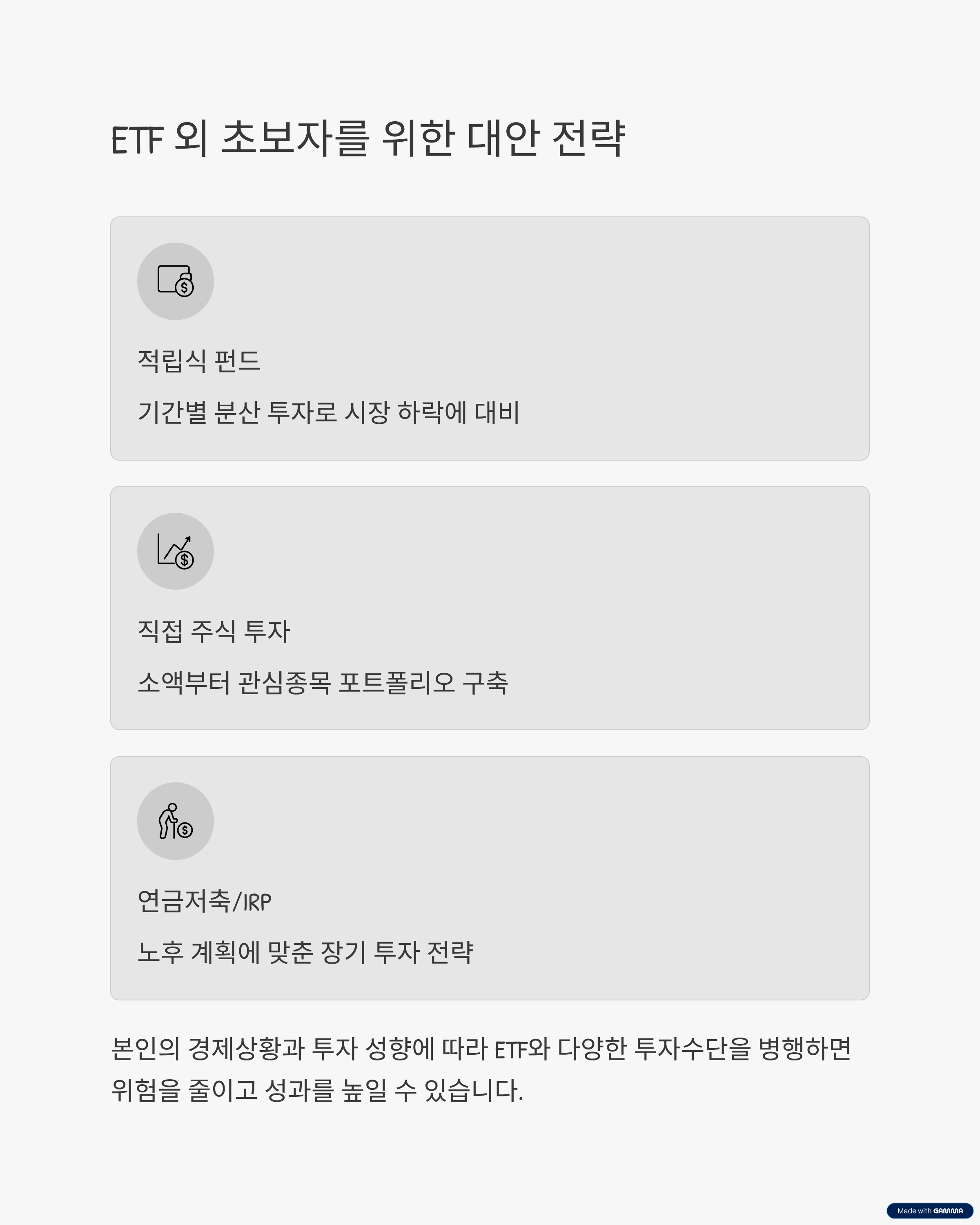 ETF 외에 초보자가 고민할 수 있는 대안은 다음과 같습니다.