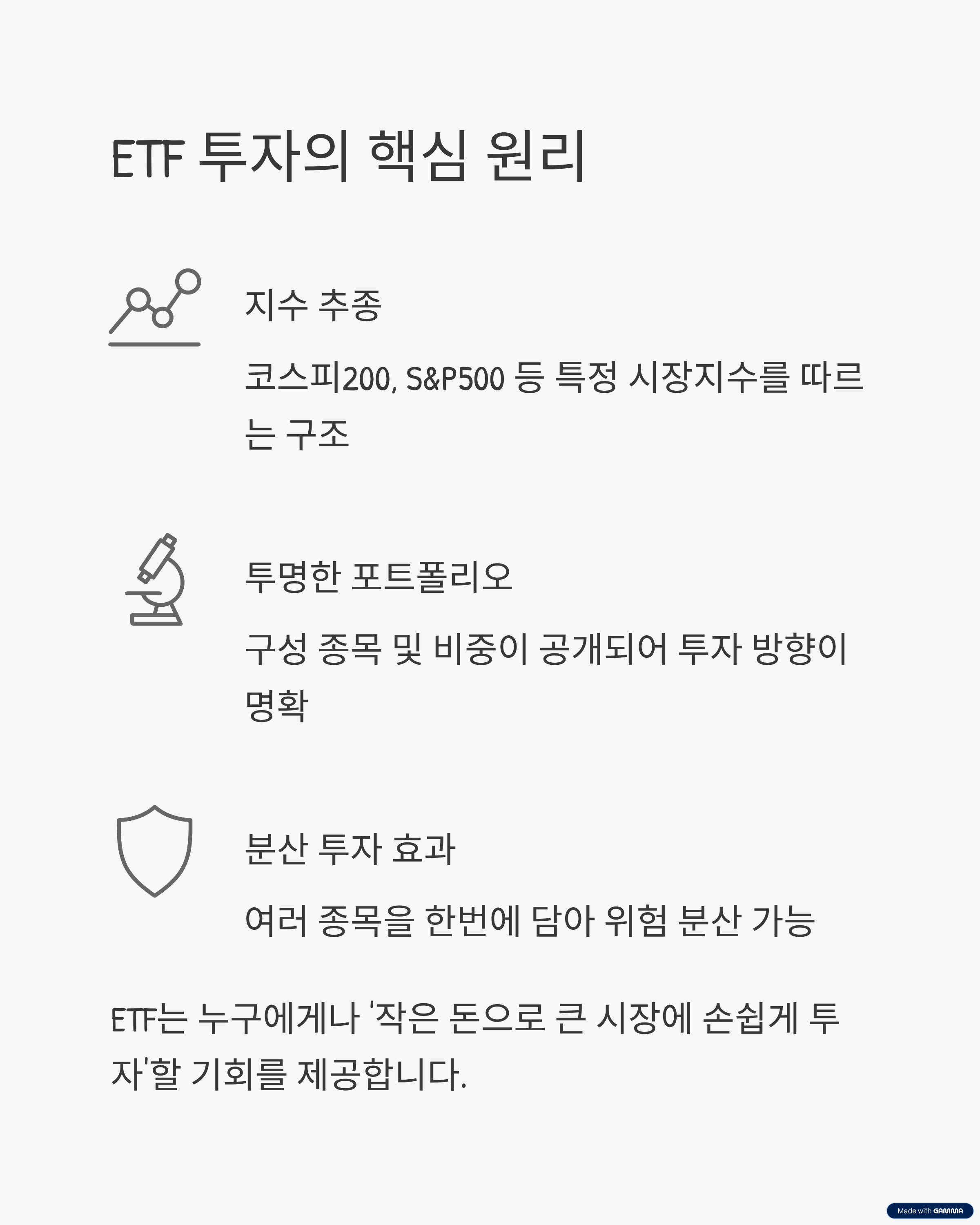 ETF는 누구에게나 '작은 돈으로 큰 시장에 손쉽게 투자’할 기회를 제공합니다.