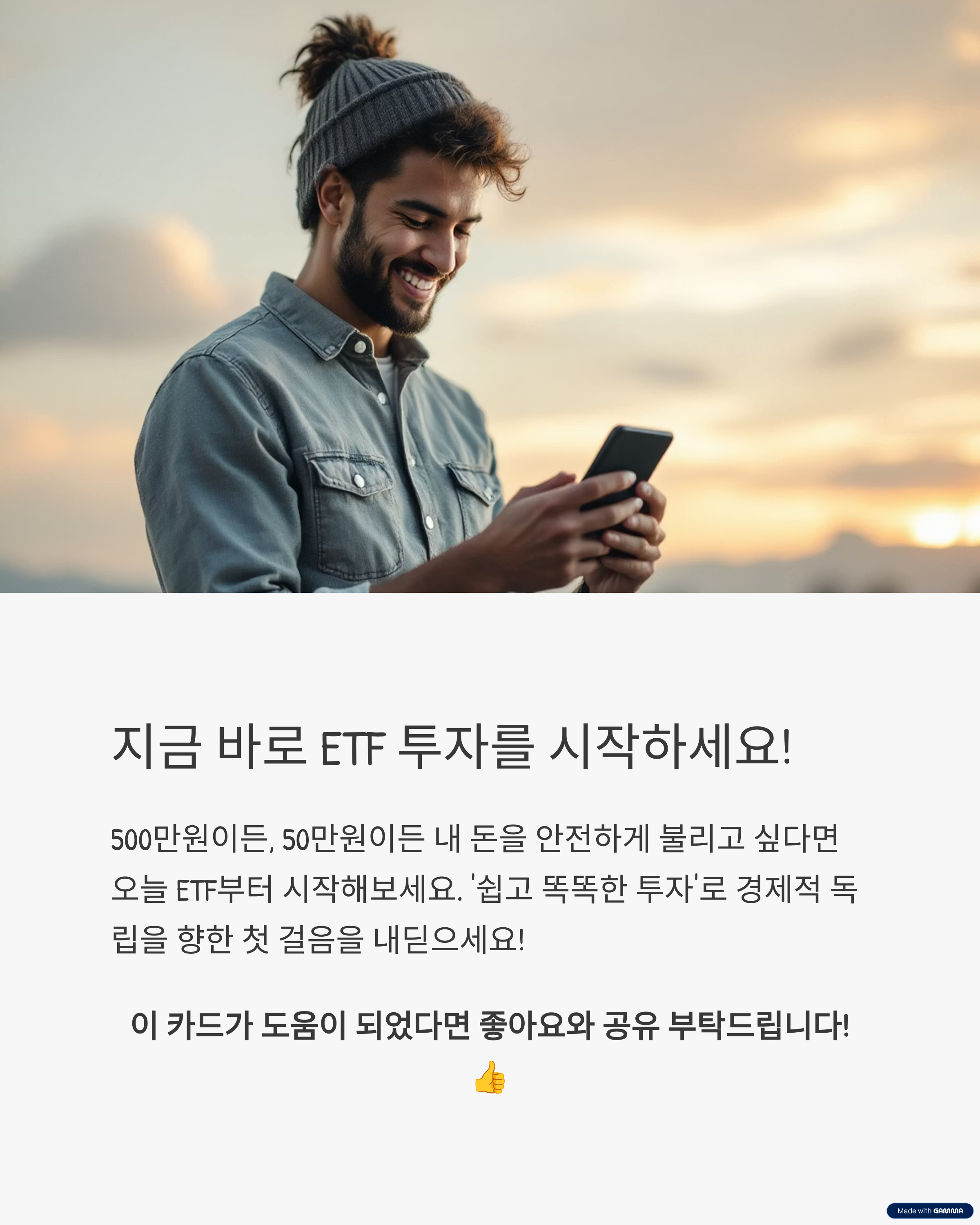 500만원이든, 50만원이든 내 돈을 안전하게 굴리고 싶다면 오늘 ETF부터 진지하게 공부하고 실행해보세요.